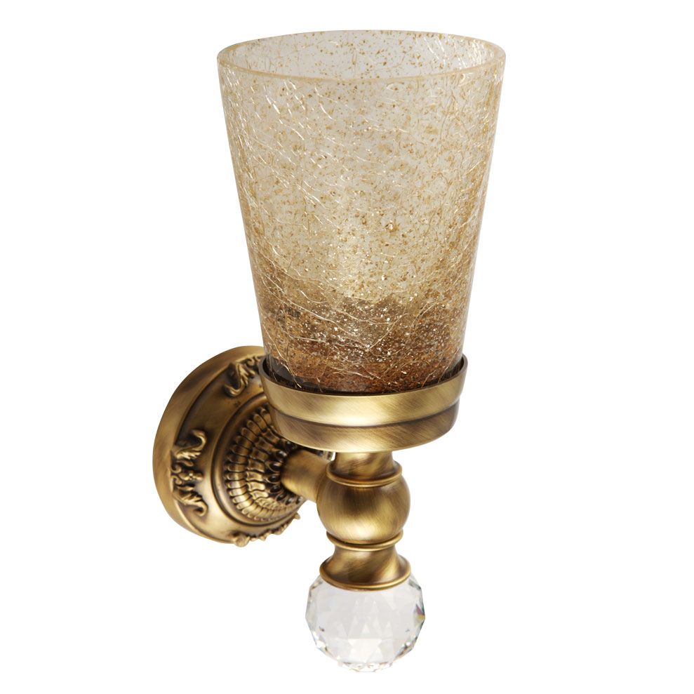 Стакан настенный коллекции CRISTALIA бренда MIGLIORE -один из самых необходимых аксессуаров для ванной комнаты. Стакан выполнен в классическом стиле и предназначен для хранения зубных щеток и тюбиков с пастой. Стекло стакана изготовлено вручную с добавлением фольги из золота, которая, растворяясь в стекле, образует богатый и красивый декор. Аксессуар украшен кристаллом Сваровски. При необходимости стакан можно вынуть из посадочного места, чтобы помыть