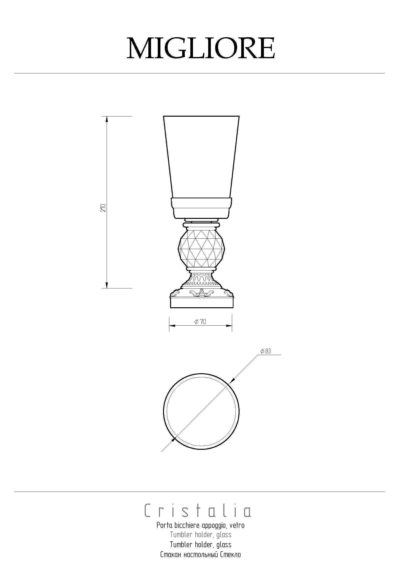 Стакан настольный коллекции CRISTALIA бренда MIGLIORE -один из самых необходимых аксессуаров для ванной комнаты. Стакан выполнен в классическом стиле и предназначен для хранения зубных щеток и тюбиков с пастой. Стекло стакана изготовлено вручную с добавлением фольги из золота, которая, растворяясь в стекле, образует богатый и красивый декор. Аксессуар украшен кристаллом Сваровски. При необходимости стакан можно вынуть из посадочного места, чтобы помыть