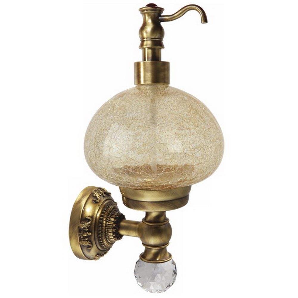 Дозатор настенный коллекции CRISTALIA бренда MIGLIORE -один из самых необходимых аксессуаров для ванной комнаты. Стекло дозатора изготовлено вручную с добавлением фольги из золота, которая, растворяясь в стекле, образует богатый и красивый декор. Аксессуар украшен кристаллом Сваровски. При необходимости дозатор можно вынуть из посадочного места, чтобы помыть