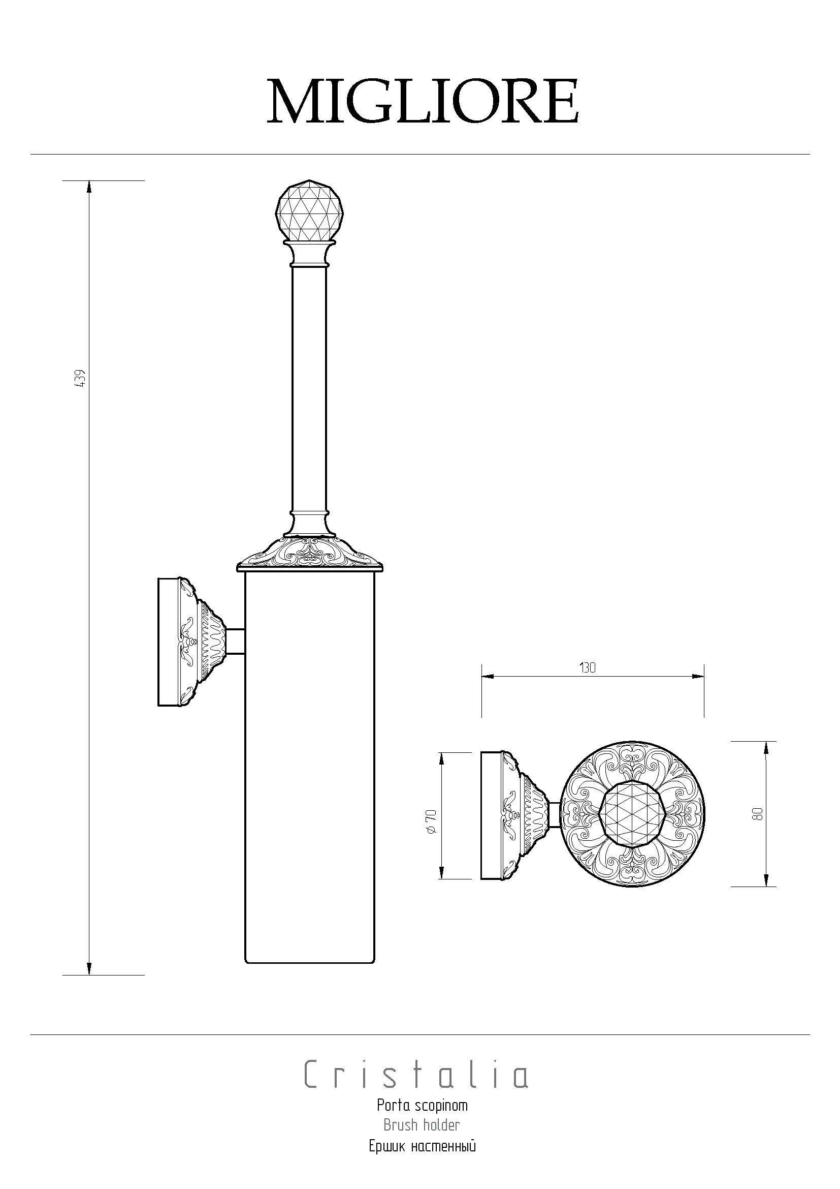 Напольный ершик коллекции CRISTALIA бренда MIGLIORE - это функциональный аксессуар для ванной комнаты. Внутри латунной колбы вставлена пластиковая колба, которую легко вынуть, чтобы помыть. Аксессуар украшен кристаллом Сваровски.