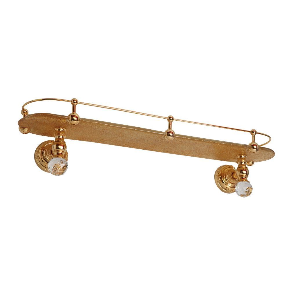 Полка с галереей коллекции CRISTALIA бренда MIGLIORE - незаменимый аксессуар для ванной комнаты в классическом стиле. На ней вы сможете разместить все необходимые косметические средства, которые будут всегда у вас под рукой. Ограничитель по переднему краю полки не позволит упасть тюбикам и предметам. Стекло полки изготовлено вручную с добавлением фольги из золота, которая, растворяясь в стекле, образует богатый и красивый декор. Аксессуар украшен кристаллами Сваровски.