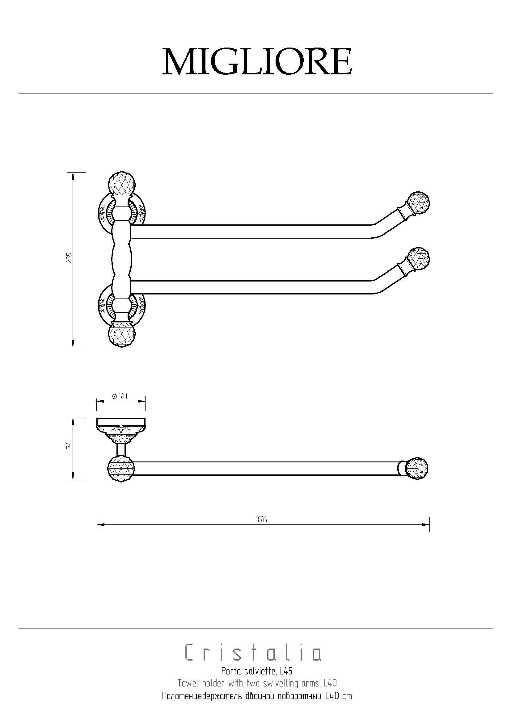 Полотенцедержатель коллекции CRISTALIA бренда MIGLIORE - функциональный аксессуар для ванной комнаты. Чтобы повесить его достаточно небольшого пространства, и вы можете развернуть его держатели в одну или другую сторону в зависимости от наличия места на стене. Аксессуар украшен кристаллами Сваровски.