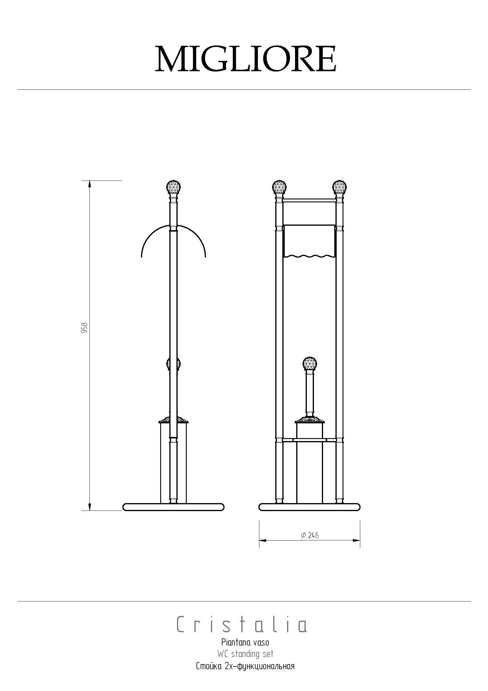 Стойка для унитаза коллекции CRISTALIA бренда MIGLIORE — это красивый и многофункциональный аксессуар для ванной комнаты. На стойке расположены бумагодержатель с крышкой и латунный ерш, внутри которого вставлена пластиковая колба, которую легко вынуть, чтобы помыть. Аксессуар богато украшен кристаллами Сваровски.