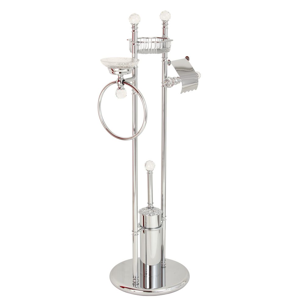 Стойка для унитаза и биде коллекции CRISTALIA бренда MIGLIORE — это красивый и многофункциональный аксессуар для ванной комнаты. На стойке расположены бумагодержатель с крышкой, решетка-корзинка, мыльница с кольцом и латунный ерш, внутри которого вставлена пластиковая колба, которую легко вынуть, чтобы помыть. Стекло мыльницы изготовлено вручную с добавлением фольги из серебра, которая, растворяясь в стекле, образует красивый декор. Аксессуар богато украшен кристаллами Сваровски.