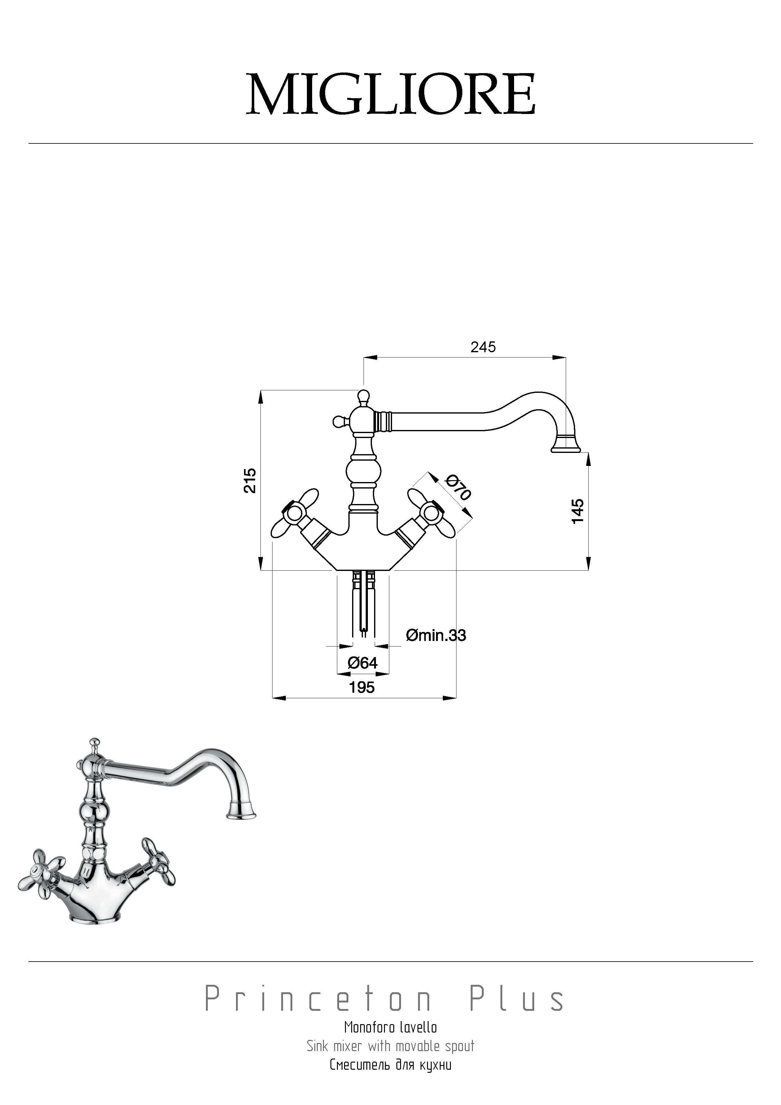 Внимание: покрытие изделия очень деликатное и для ухода рекомендуется использовать чистящие средство бренда MIGLIORE для смесителей и аксессуаров.