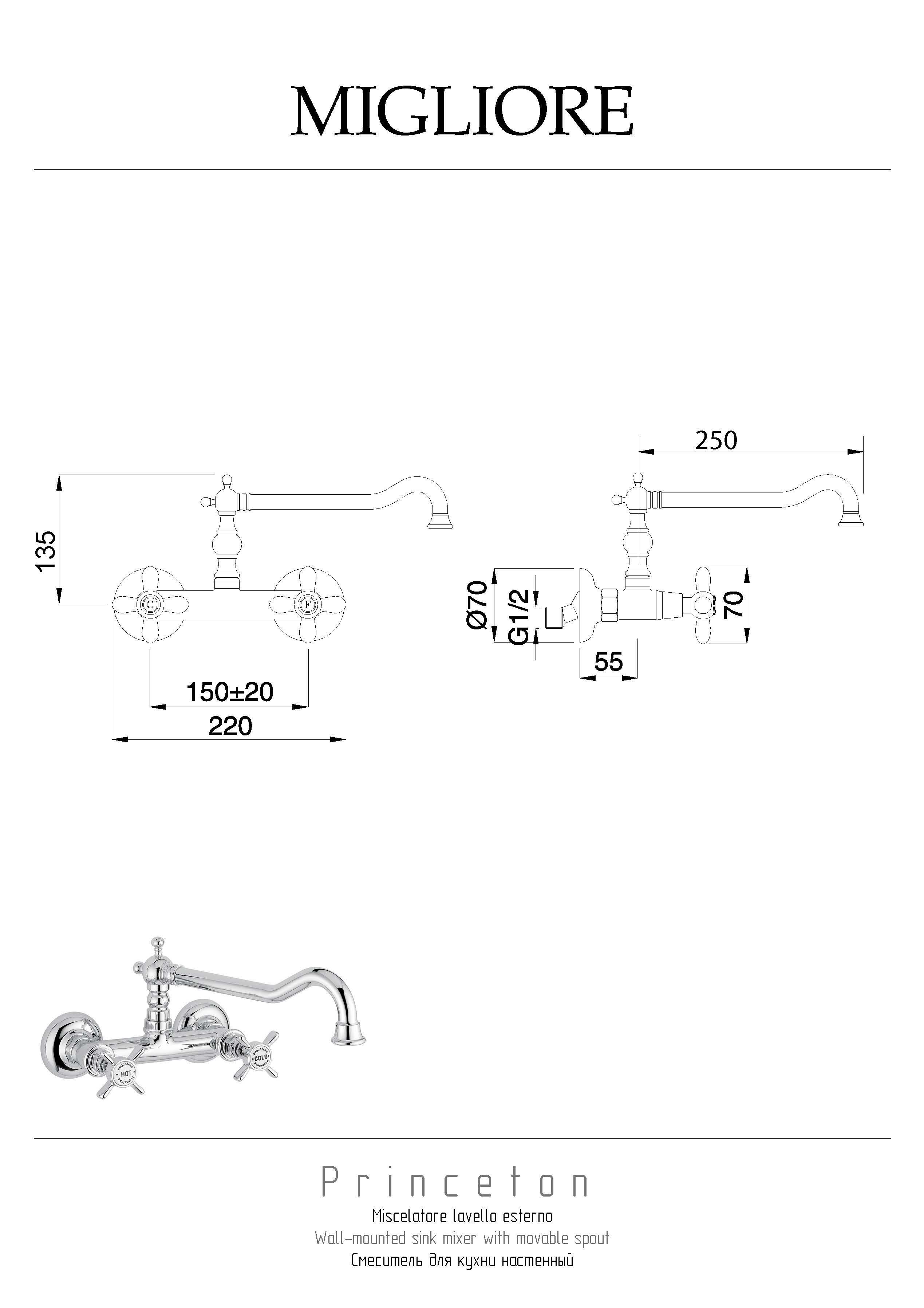 Рекомендуется использовать чистящее средство бренда MIGLIORE для смесителей и аксессуаров с хромированным покрытием.
