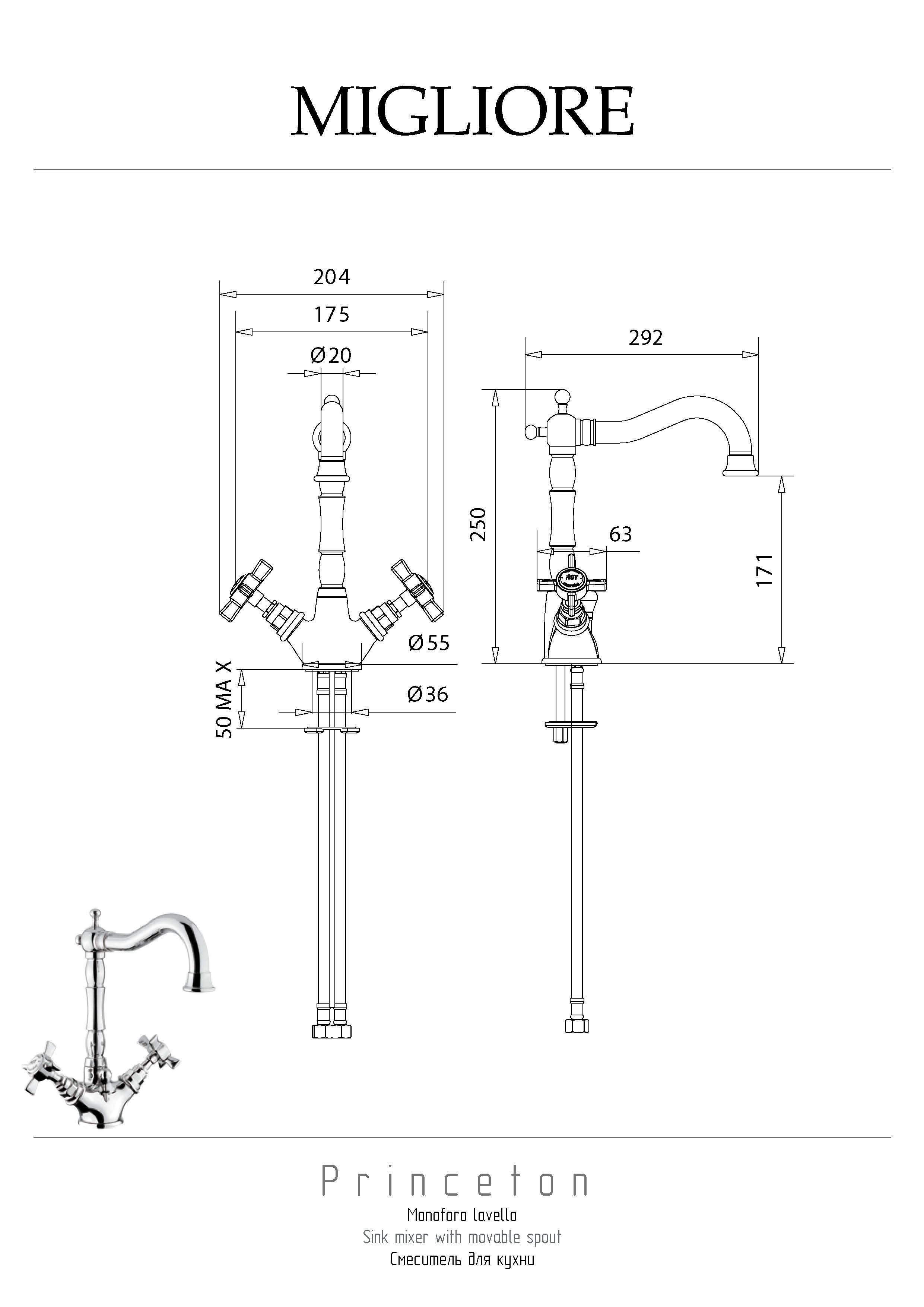 Внимание: золотое покрытие очень деликатное и для ухода рекомендуется использовать чистящее средство бренда MIGLIORE для смесителей и аксессуаров с деликатными покрытиями бронза, золото, медь и протирать мягкой ветошью.