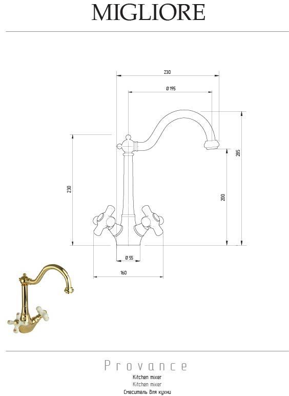Рекомендуется использовать чистящее средство бренда MIGLIORE для смесителей и аксессуаров с хромированным покрытием.