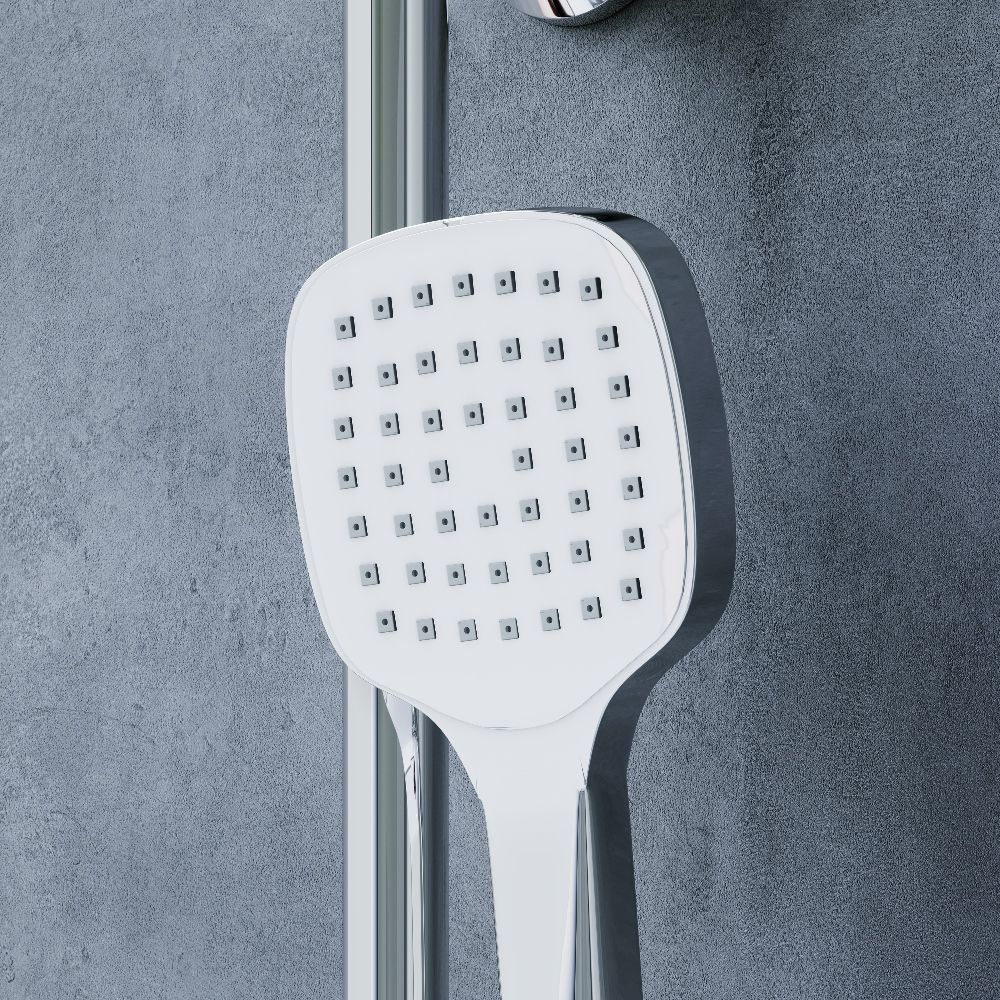 Стильные и большие квадратные лейки обеспечат комфортный напор воды а слайдер ручного душа и крепление верхнего позволит настроить нужное положение.