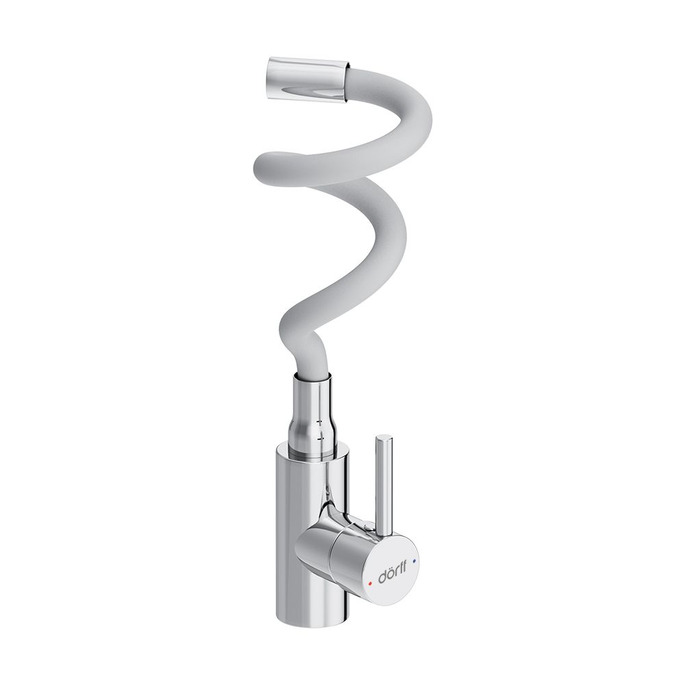 Гибкий излив имеет приятную на ощупь поверхность легко моется и сохраняет привлекательный вид даже после долгого использования.