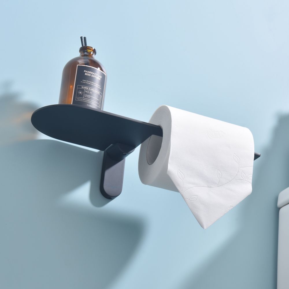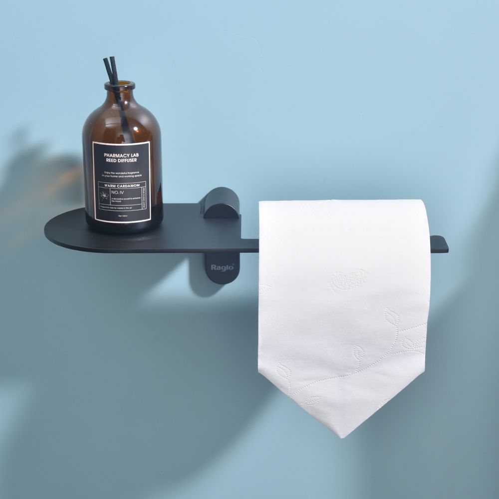 Raglo R300.03.06 Бумагодержатель с полочкой под телефон. Форма округлая, цвет - черный. Комплект крепежа есть.