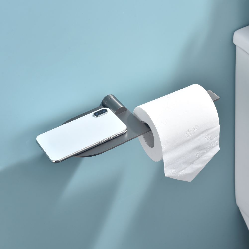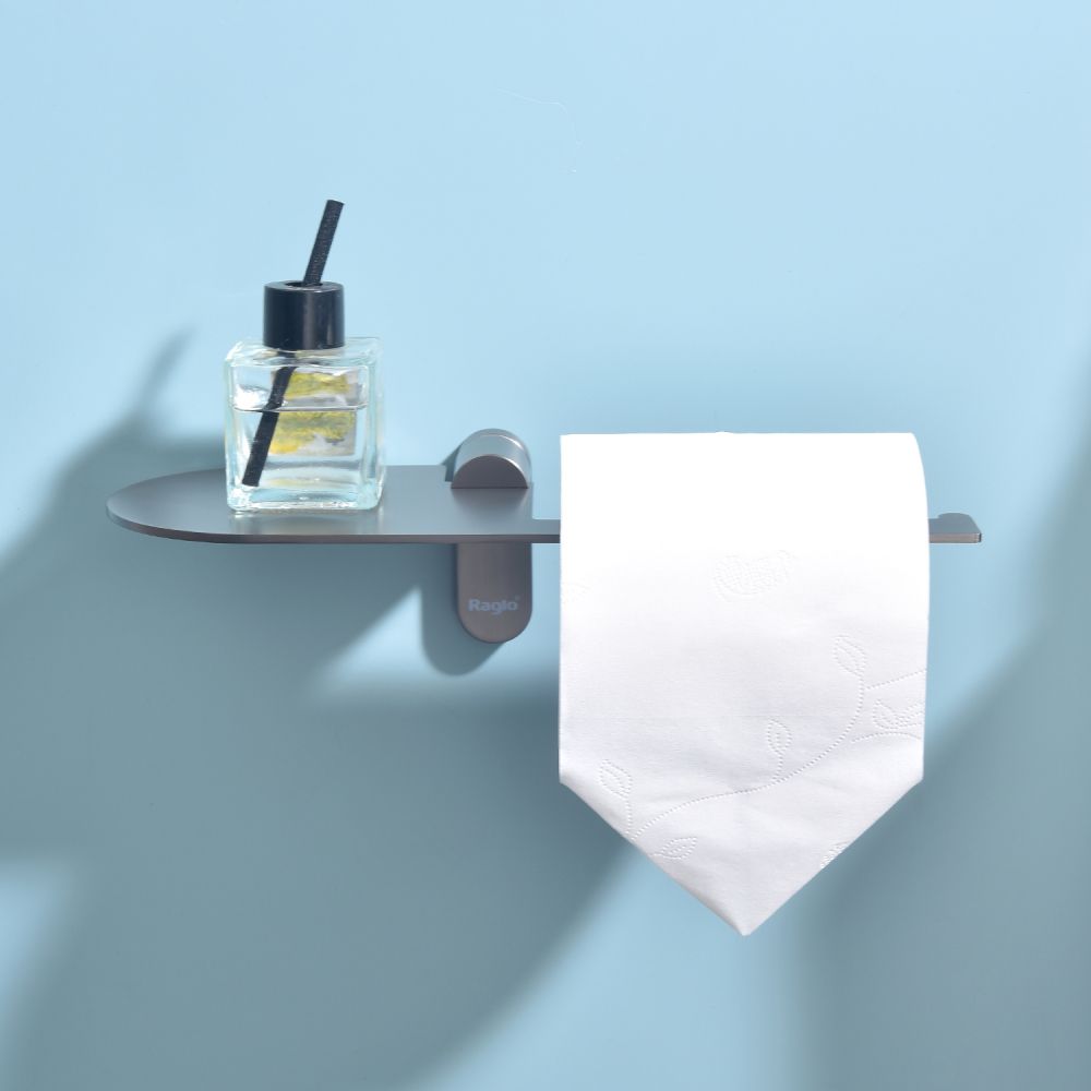 Raglo R300.03.09 Бумагодержатель с полочкой под телефон. Форма округлая, цвет - графит. Комплект крепежа есть.
