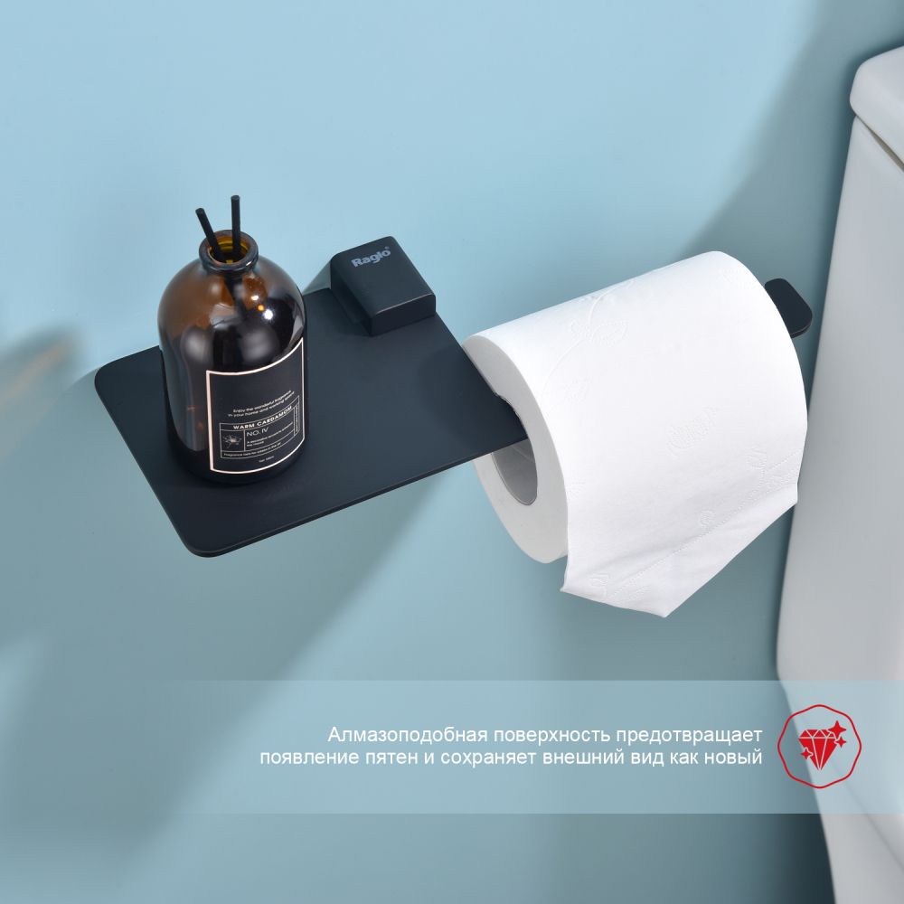 Raglo R301.03.06 Бумагодержатель с полочкой под телефон. Форма квадратная, цвет - черный, полуматовое покрытие. Комплект крепежа есть.