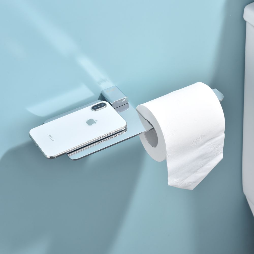 Raglo R301.03 Бумагодержатель с полочкой под телефон. Форма квадратная, цвет - хром, глянцевое покрытие. Комплект крепежа есть.
