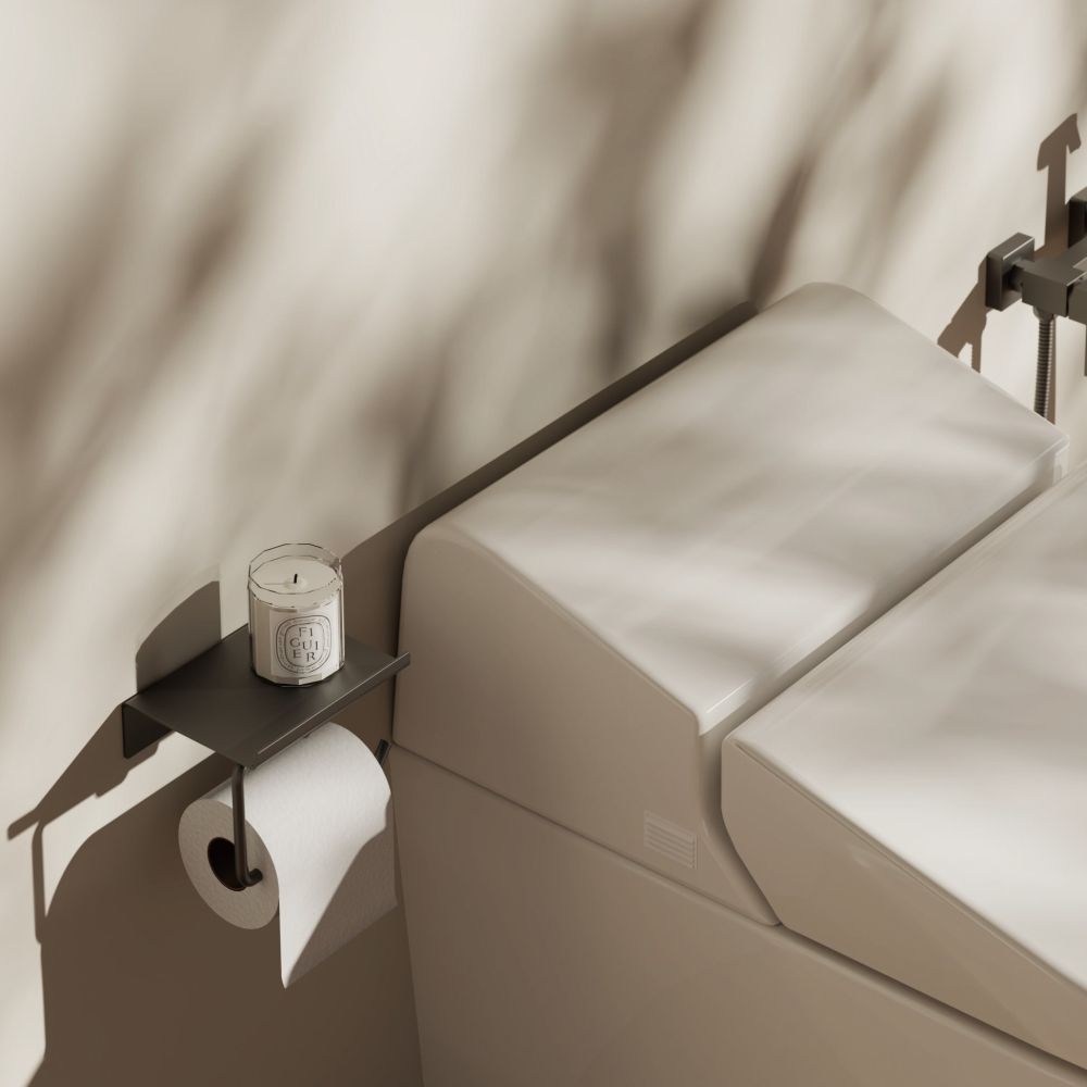 Особенностью держателя BELZ является его продуманная конструкция с полкой в верхней части. Эта полка предоставляет дополнительное пространство для хранения различных гигиенических средств, таких как салфетки, спреи или другие мелкие предметы. Это решение помогает оптимизировать использование пространства и поддерживать порядок в ванной комнате.