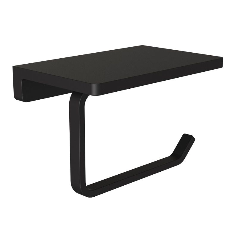 Черный матовый держатель туалетной бумаги — идеальный баланс стиля и комфорта. Полочка для телефона или аксессуаров превращает ванную в организованное пространство. Прочный сплав ZAMAK, антиследовое покрытие, быстрый монтаж — всё для вашего удобства.