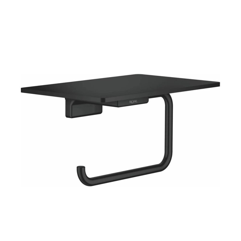 Держатель для туалетной бумаги с полочкой Rose RG1805H, черный.