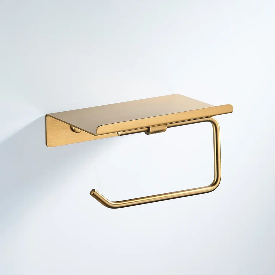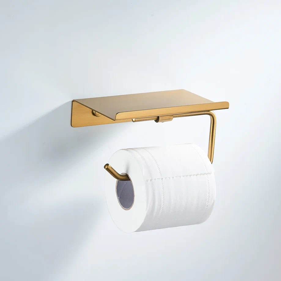 Держатель для туалетной бумаги Shevanik SG5705G-1 в современном цвете "золотой сатин" (брашированное золото) — это элегантное и функциональное решение для ванной комнаты или туалета. Изготовленный из прочной нержавеющей стали, он отличается долговечностью и устойчивостью к влаге, что особенно важно для помещений с повышенной влажностью. Конструкция держателя с полочкой позволяет не только удобно разместить рулон туалетной бумаги, но и организовать хранение различных предметов личной гигиены или освежителя воздуха, что помогает поддерживать порядок и чистоту. Современный минималистичный дизайн делает этот аксессуар универсальным элементом интерьера, который гармонично впишется в любой стиль. Настенный монтаж обеспечивает простоту установки, а комплект, включающий как саморезы, так и дюбели, позволяет выбрать оптимальный способ крепления в зависимости от типа стены. Держатель Shevanik не только удобен в использовании, но и служит стильным дополнением к общему дизайну помещения.