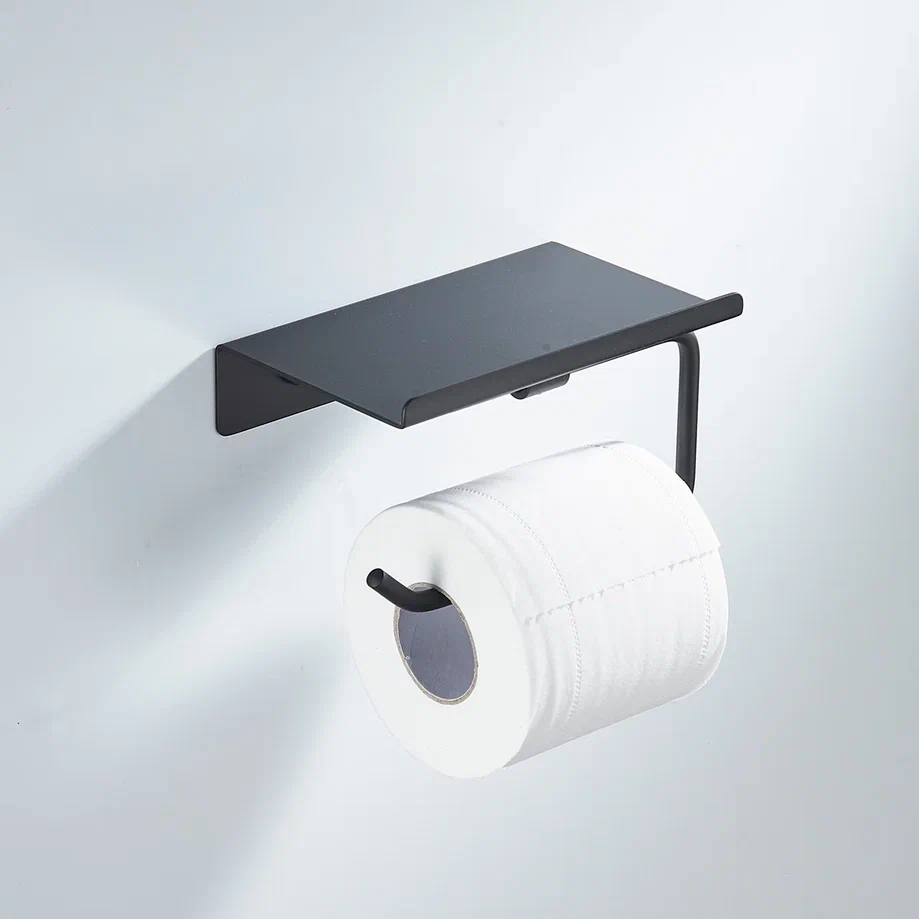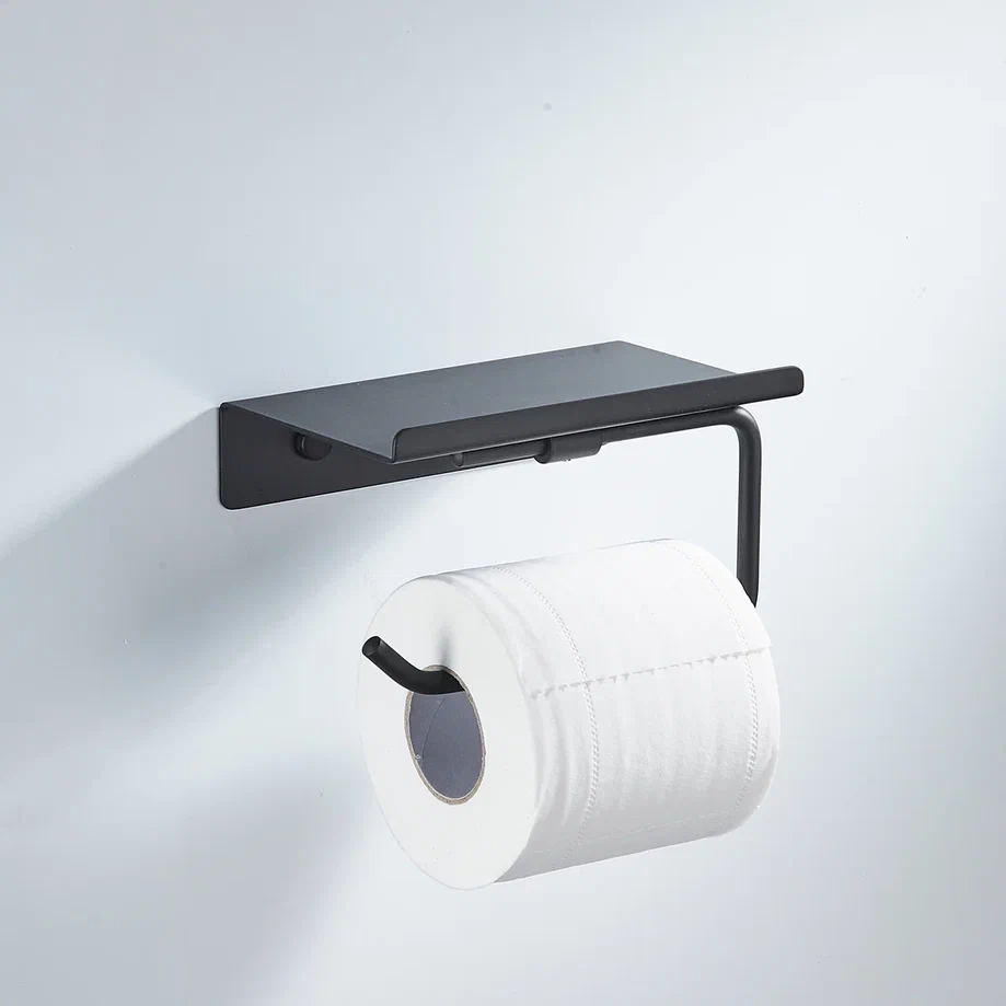 Держатель для туалетной бумаги Shevanik SG5705H-1 в черном матовом цвете — это элегантное и функциональное решение для ванной комнаты или туалета. Изготовленный из прочной нержавеющей стали, он отличается долговечностью и устойчивостью к влаге, что особенно важно для помещений с повышенной влажностью. Конструкция держателя с полочкой позволяет не только удобно разместить рулон туалетной бумаги, но и организовать хранение различных предметов личной гигиены или освежителя воздуха, что помогает поддерживать порядок и чистоту. Современный минималистичный дизайн делает этот аксессуар универсальным элементом интерьера, который гармонично впишется в любой стиль. Настенный монтаж обеспечивает простоту установки, а комплект, включающий как саморезы, так и дюбели, позволяет выбрать оптимальный способ крепления в зависимости от типа стены. Держатель Shevanik не только удобен в использовании, но и служит стильным дополнением к общему дизайну помещения.
