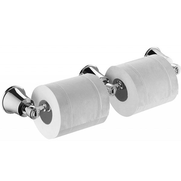 Современный двойной держатель туалетной бумаги изготовлен из латуни и выполнен в цвете хром.