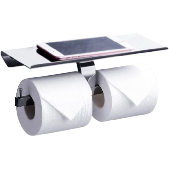 Настенный держатель с полочкой Rush Edge ED77142B для двух рулонов туалетной бумаги.