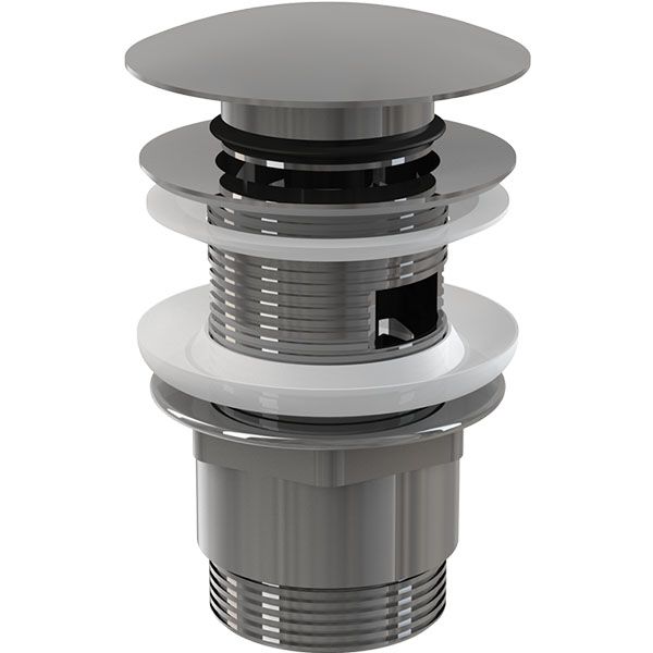 Донный клапан Alcaplast A390 CLICK/CLACK 5/4, цельнометаллический с переливом и большой заглушкой.