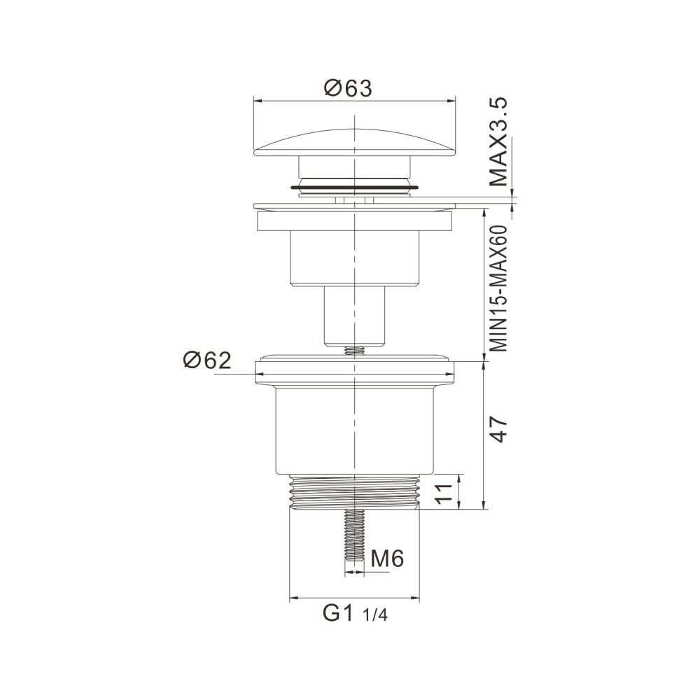 Клапан имеет стандартный выход 5/4", что делает его совместимым с большинством систем канализации и сифонов. Это упрощает процесс установки и позволяет избежать необходимости в дополнительных переходниках или адаптерах.