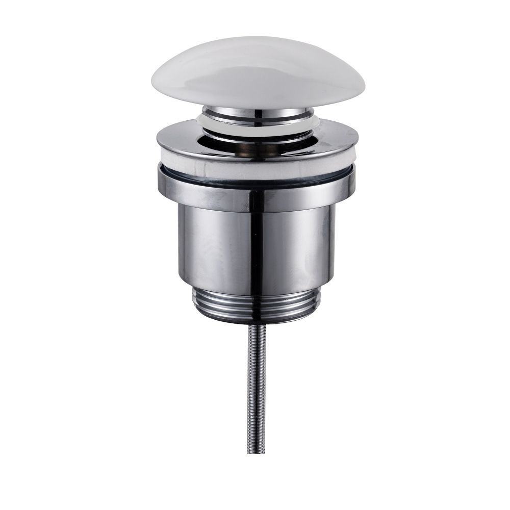 Донный клапан R600.01.38 хорошо впишется в сочетании с открытыми сифонами. Плотно прилегает к сливу и мешает поступлению воды и неприятных запахов из канализации. Сделан из латуни. Крышка - керамическая белая. Не будет ржаветь и не потеряет блеск со временем. Клапан автоматический, чтобы перекрыть отверстие достаточно легкого нажатия на поверхность корпуса. В таком механизме пробка не потеряется. Конструкция качественная и надежная.