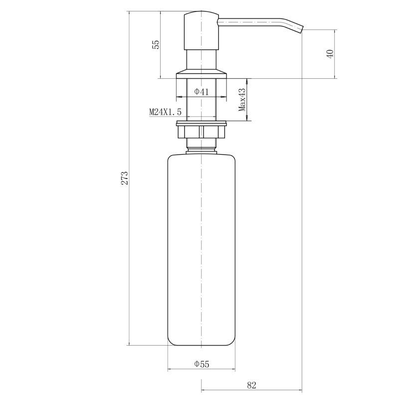 дозатор для кухонной мойки с колбой, Н=273 мм, H внешней части =55 мм, D нажимного элемента =26 мм