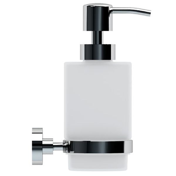 Дозатор для жидкого мыла Ravak Chrome X07P223 выполнен из матового стекла в сочетании с латунным материалом цвета хром.