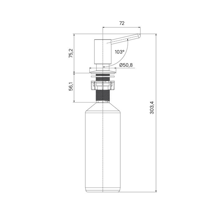 •Легко наполнять – верхняя часть дозатора снимается без резьбы и удерживается уплотнительным кольцом.