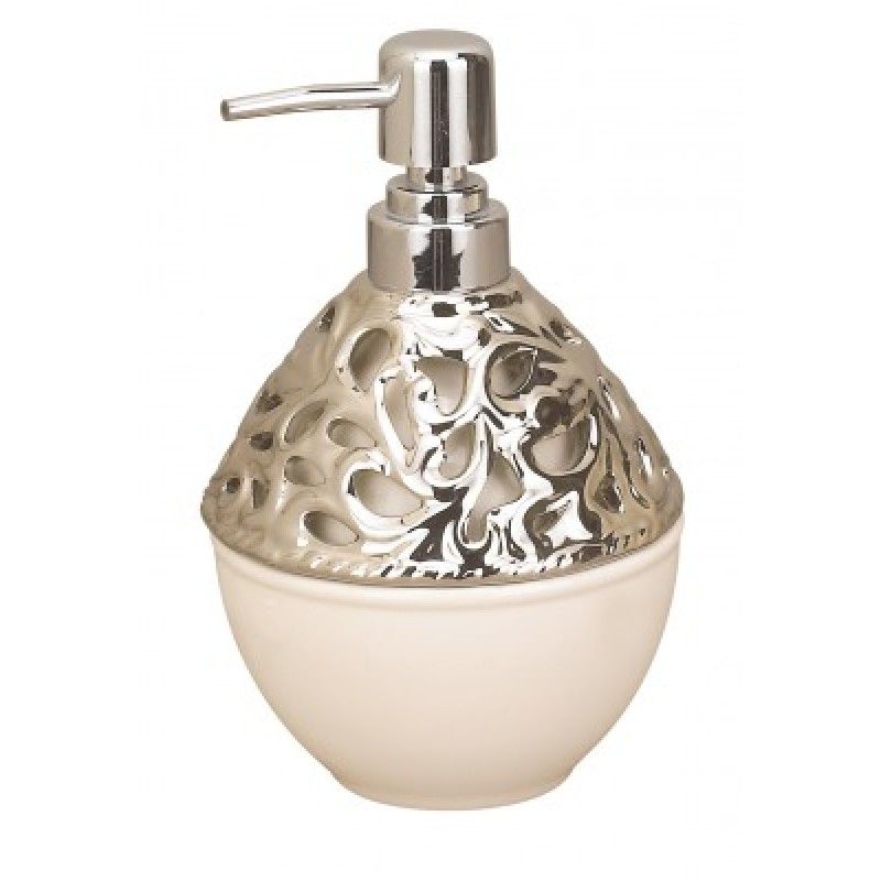 Дозатор жидкого мыла Fixsen Toly FX-A237-S-1 настольный для ванной комнаты с изящным ажурным декором в виде цветочного орнамента с золотистым декором.