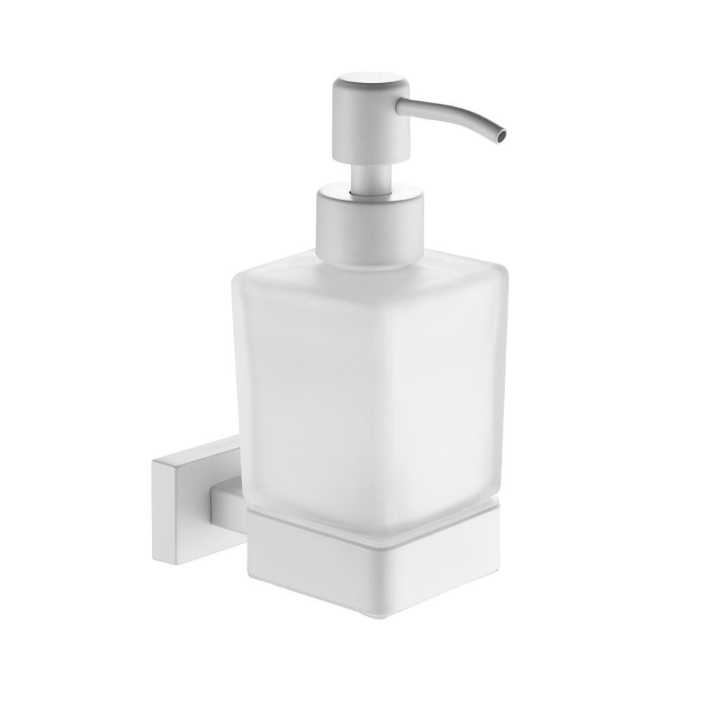 Дозатор жидкого мыла Shevanik SG5644C, белый. Материал: латунь/стекло. Монтаж: настенный. Форма розетки: прямоугольная.