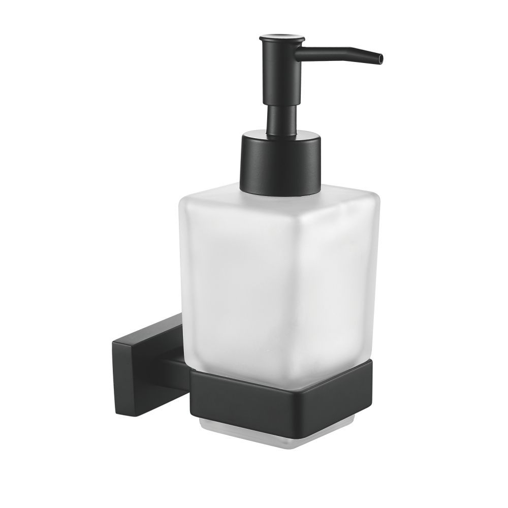 Дозатор жидкого мыла Shevanik SG5644H, черный. Материал: латунь/стекло. Монтаж: настенный. Форма розетки: прямоугольная.
