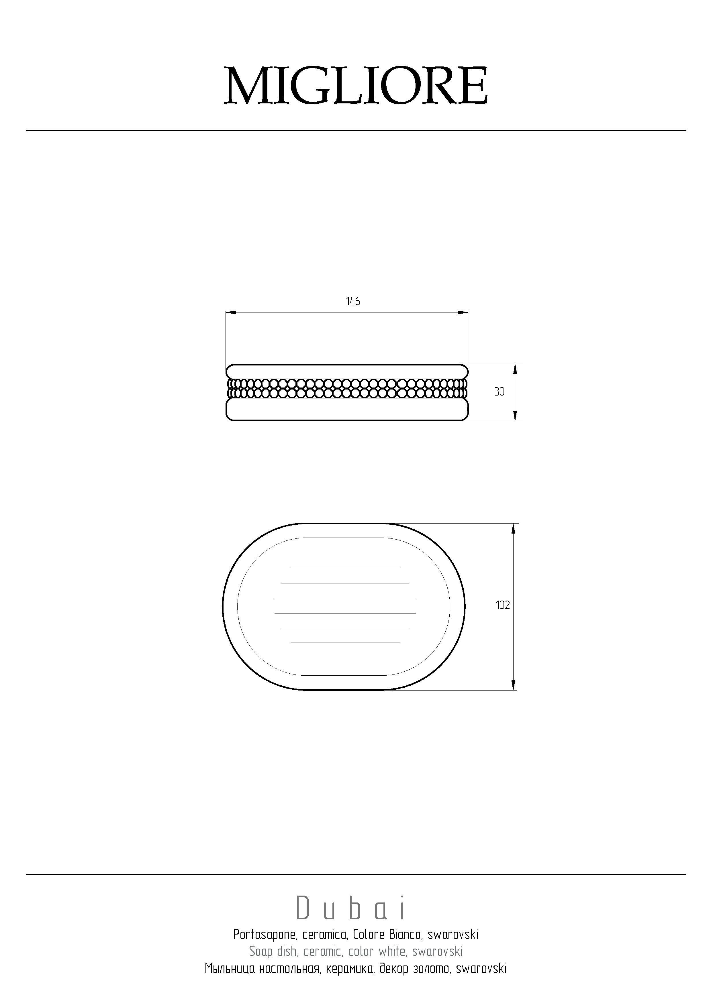 Мыльница настольная коллекции DUBAI бренда MIGLIORE - один из необходимых аксессуаров для ванной комнаты. Качественная белая керамика, которую очень легко мыть.