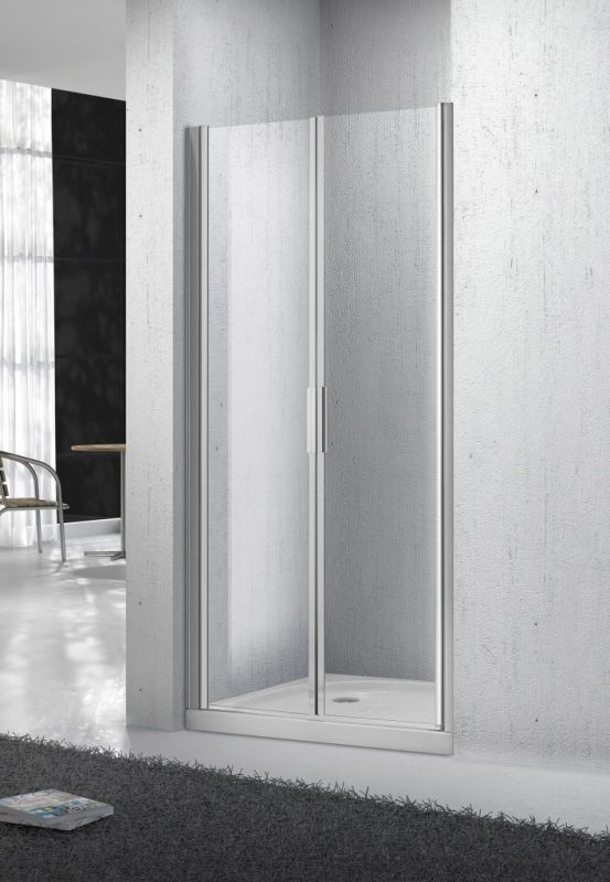 Двухсекционная распашная душевая дверь в нишу BelBagno Sela B-2 шириной 90 см, профиль Хром, стекло прозрачное. Артикул: SELA-B-2-90-C-Cr.