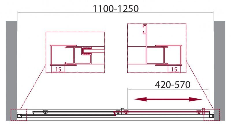 Регулировка ширины: предусмотрена за счет боковых профилей