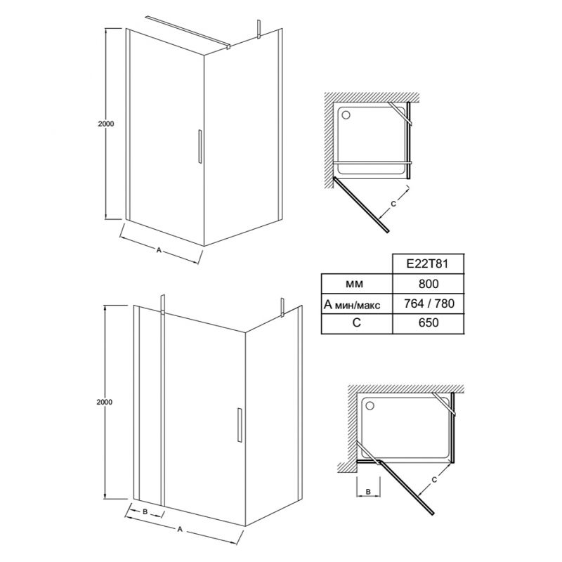- Монтаж: в составе душевого уголка.