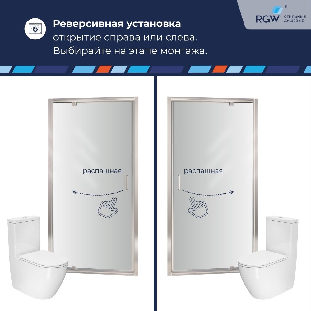 В комплект с душевой дверью RGW PA-105 входит дополнительный профиль, который упрощает установку и настройку в соответствии с вашими конкретными потребностями. Дверь душа также спроектирована с поворотной дверью, что позволяет легко входить и выходить из душа.