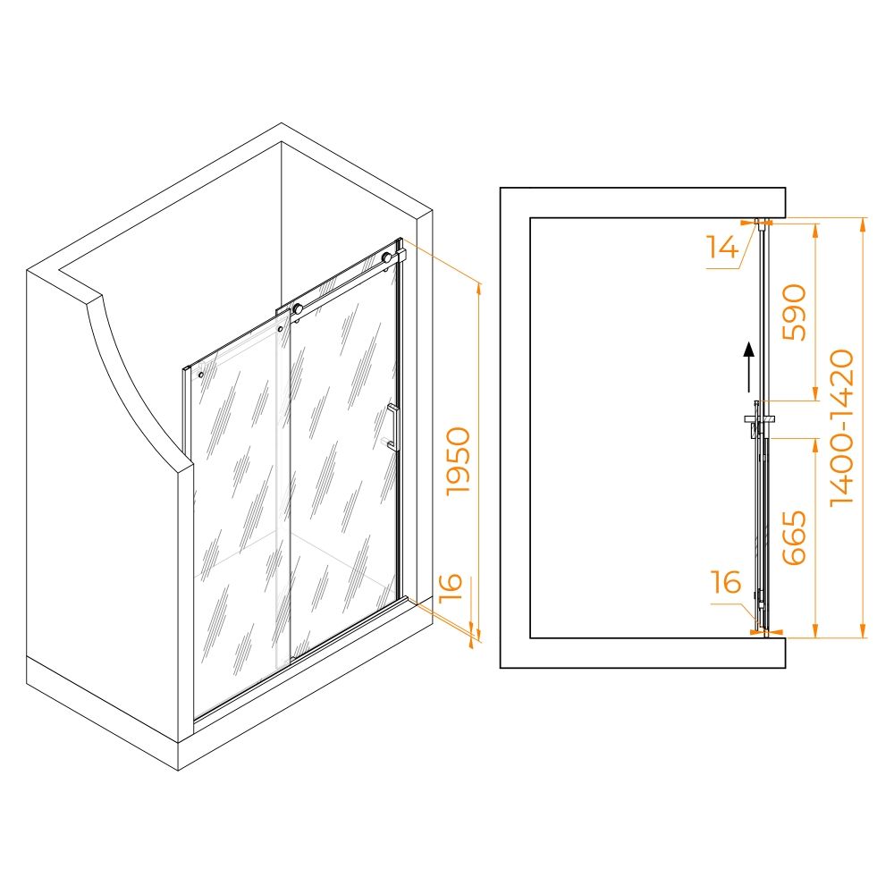 Эта душевая дверь общей высотой 1950 мм обеспечивает достаточно места для комфортного принятия душа. Класс утечки 2 гарантирует, что вода останется внутри душевой зоны, предотвращая нежелательное повреждение водой пола в ванной комнате. Конструкция раздвижной двери добавляет удобства, обеспечивая легкий доступ и максимально эффективно используя пространство.