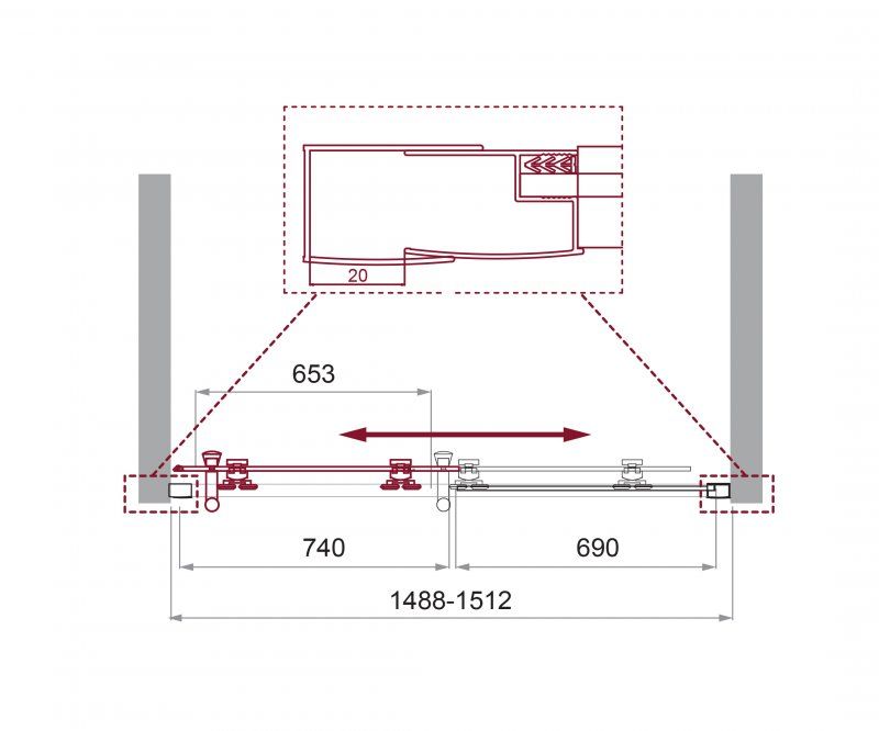 Регулировка ширины: предусмотрена за счет боковых профилей