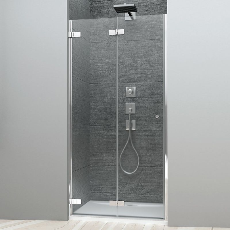 Стеклянная душевая дверь в нишу типа Bi-fold Radaway Arta DWB 90 386151-03-01L распахивающаяся наружу и складывающаяся гармошкой внутрь, с элегантной хромированной фурнитурой. Подходит для инвалидов. Плоская поверхность изнутри облегчает очистку стекол. Прочное закаленное стекло безопасно в случаях повреждений. Водоотталкивающее защитное покрытие Easy Clean не позволяет каплям воды удерживаться на поверхности стекла и оставлять следы.