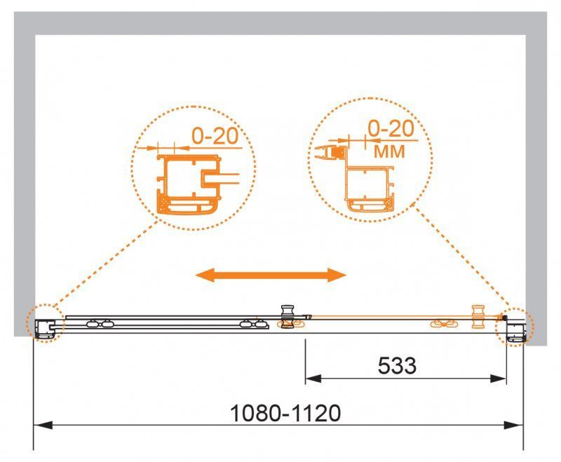 Регулировка ширины: предусмотрена за счет боковых профилей
