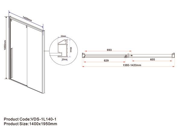 Душевая дверь Vincea Lugano VDS-1L140CL-1 140x195.
