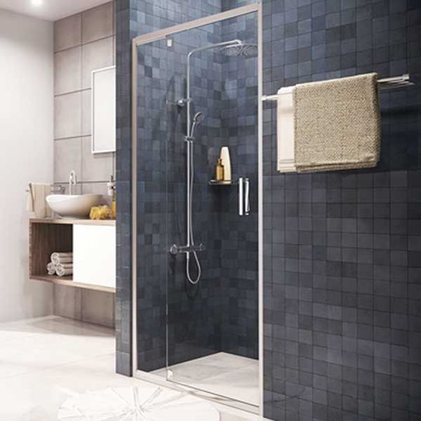 Стеклянная Душевая дверь WasserKRAFT Berkel 90x200 48P04. Ручки двери и детали с хромоникелевым покрытием. Дверь с системой Pivot - дверь открывается и закрывается за счет верхних и нижних петель. Сами петли выполнены из латуни и представляют собой стержень, вращающийся по своей оси.