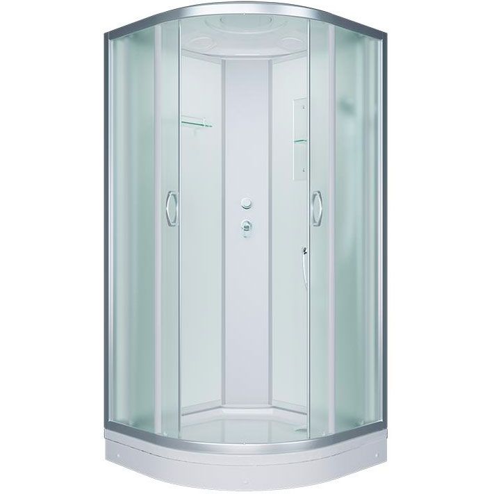 Функциональная душевая кабина Erlit имеет форму четверть круга. Для комфортного использования внутри кабины зеркало и полочка.