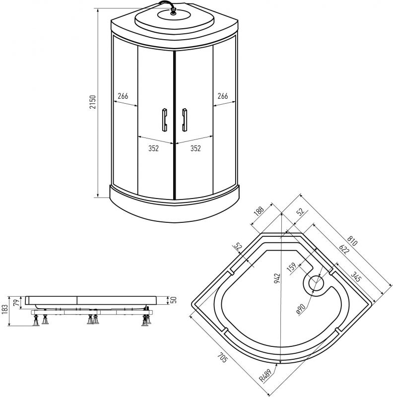 Усиленный поддон кабины изготовлен из акрила, выдерживает нагрузку в 210 кг. Конструкция кабины легко собирается.