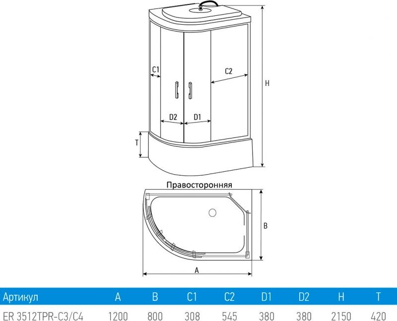 Душевая кабина Erlit Comfort ER3512TPR-C3 120x80 см.