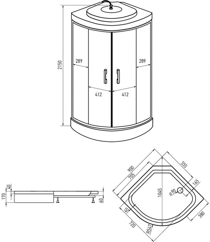 В комплекте поставки: душевая кабина, тропический душ, ручной душ, зеркало, полочка, инструкция.