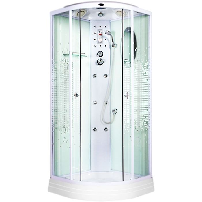 Стеклянная душевая кабина с гидромассажем Niagara NG-302 Мозаик 95x95 угловая, в форме четверти круга, с двумя раздвижными дверьми, с крышей. Душевая кабина Ниагара - это водопад удовольствия, волшебство преображения и расслабления под струями воды от суеты дня. Идеальное сочетание цены и качества. Дизайн и комфорт. Высококачественные и экологически чистые материалы.